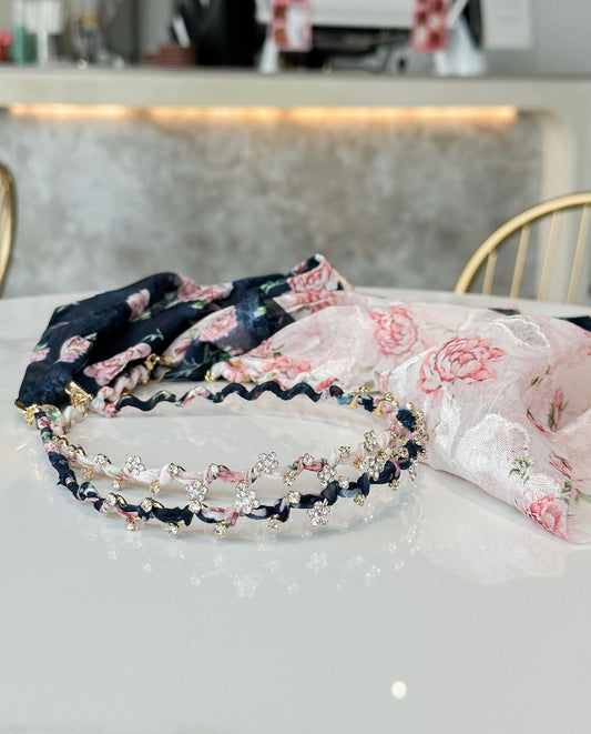 🌹玫瑰花水晶吊鏈絲帶頭箍