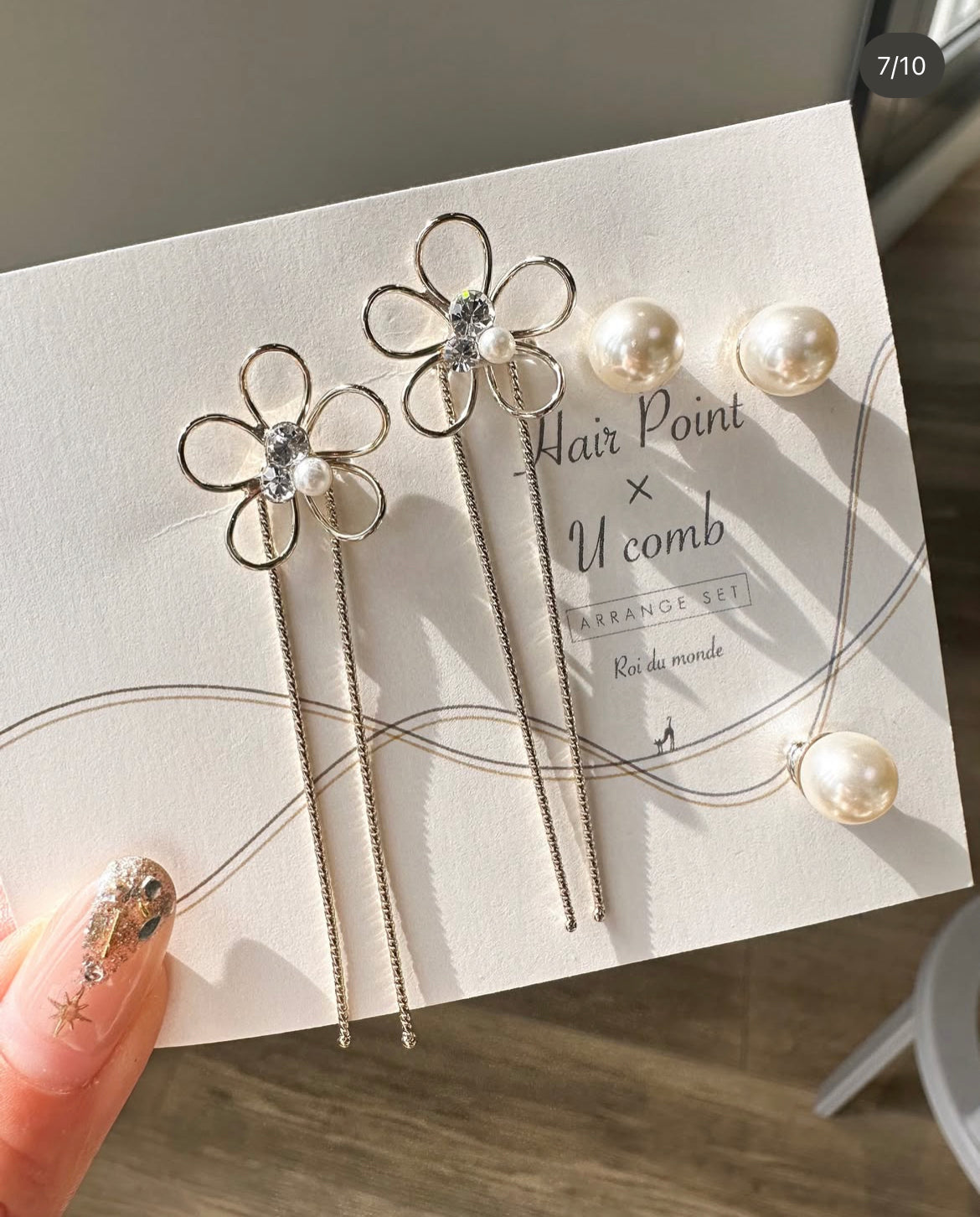 金屬花花珍珠髮插套裝